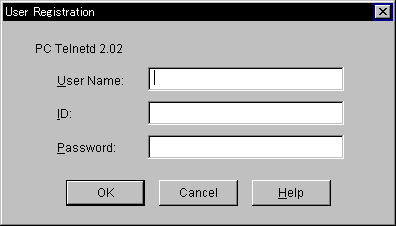 - From Help menu of PC Telnetd, click User Registration to show the following dialog box.